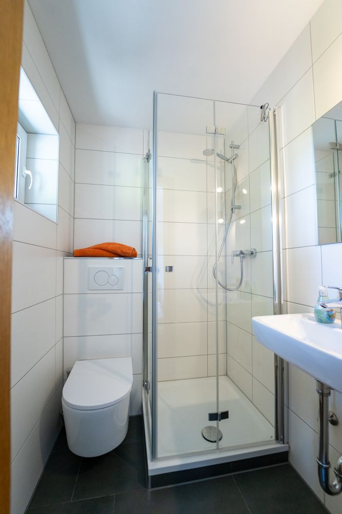 Die Schlafzimmer verteilen sich auf drei Etagen. Im Parterre gibt es ein separates Badezimmer, drei weitere Badezimmer sind an Schlafzimmer an- geschlossen. Ein separates Badezimmer befindet sich zudem auf der zweiten Etage. Es wurden 4 von 5 Badezimmern im Frühjahr 2025 renoviert.